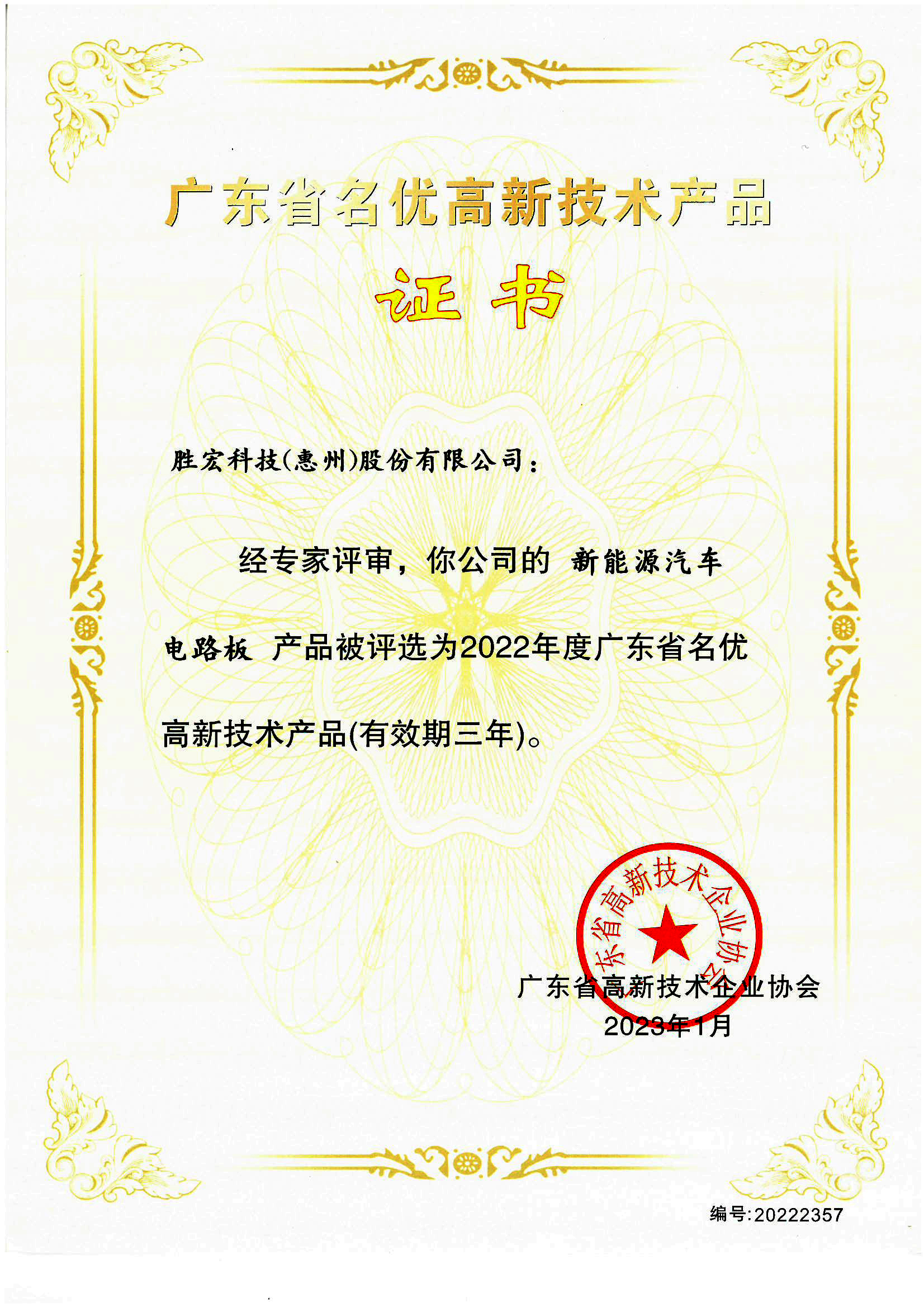 “新能源汽車電路板”名優高新技術產品證書