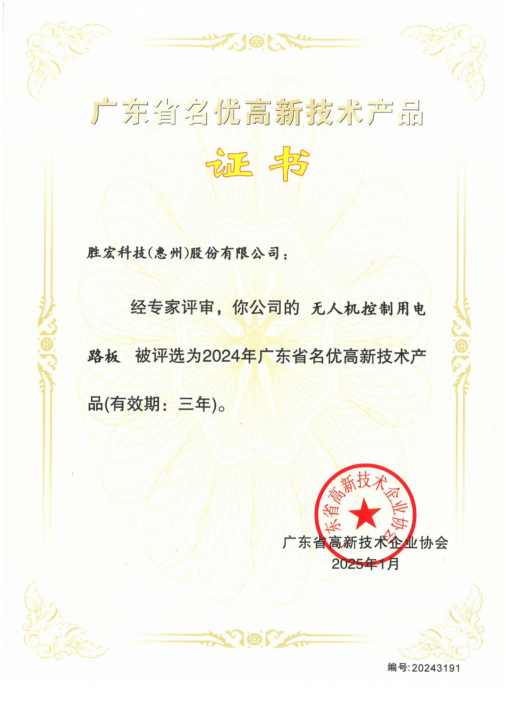 “無人機控制用電路板”高新技術產品證書